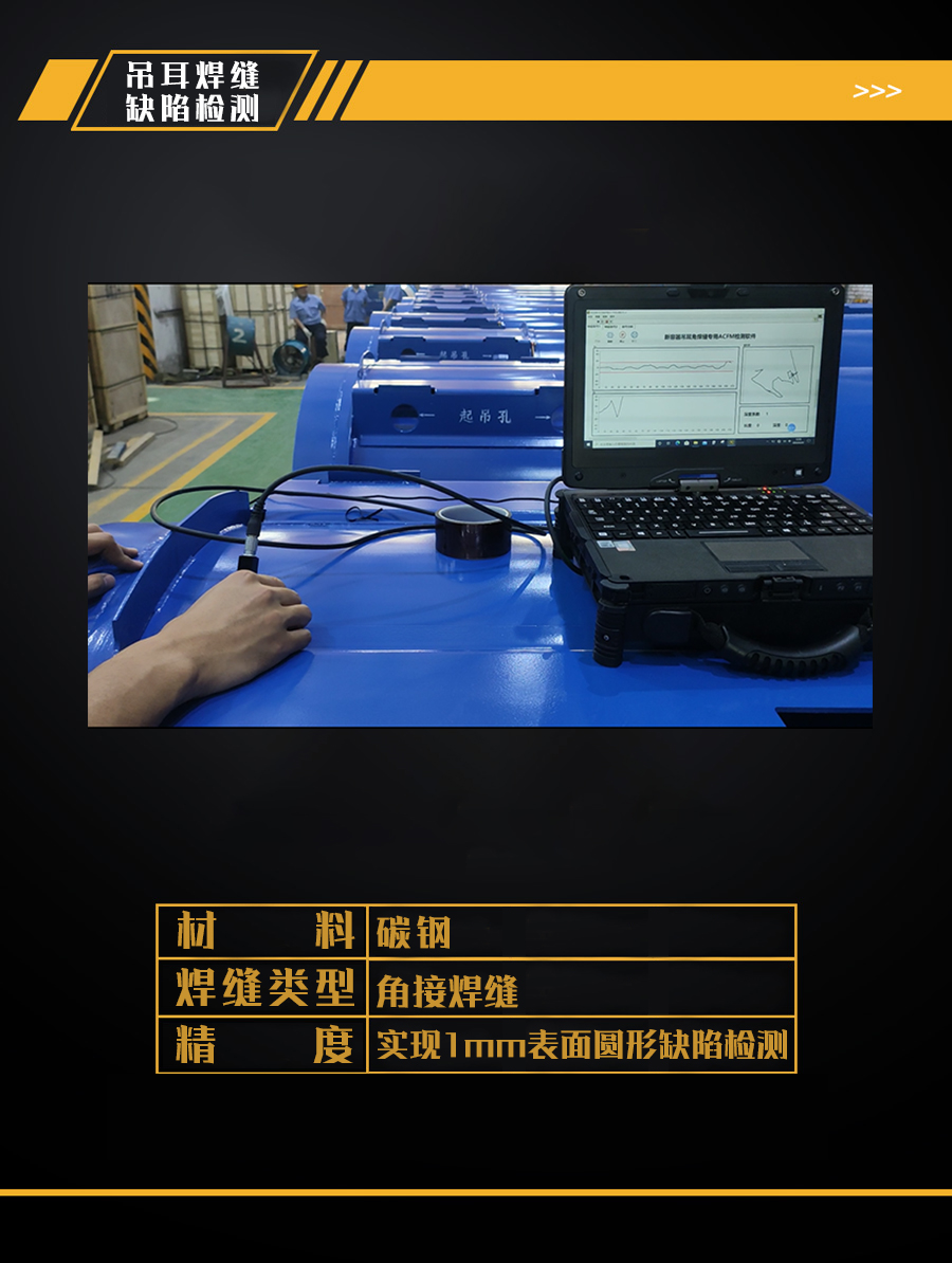 6、便攜式的檢測系統(tǒng),減少檢測人員的勞動強(qiáng)度提升檢測效率;探頭可以較快的速度進(jìn)行掃查,檢測無后效性,無需退磁、表面清理等;