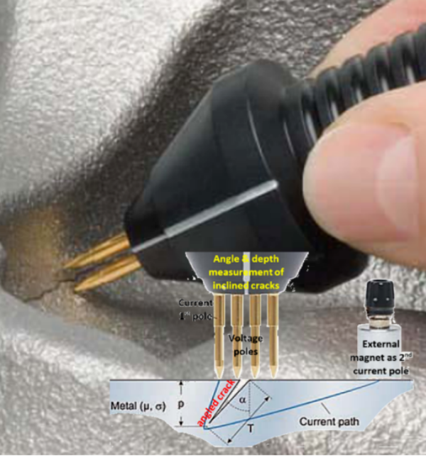 然而,ACPD技術(shù)存在較大局限性,限制了其在實(shí)際工程中的推廣。首先,其原理要求探針必須與工件直接接觸,因此檢測(cè)區(qū)域需打磨至金屬本色。其次,雙探針布置具有方向性,容易導(dǎo)致漏檢。雖可采用多組探針以改善該問(wèn)題,但隨之而來(lái)的是更大的打磨面積和更復(fù)雜的數(shù)據(jù)處理。