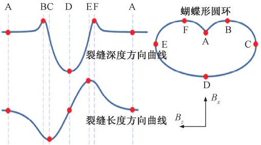 圖2 ACFM磁場(chǎng)信號(hào)變化與特征點(diǎn)