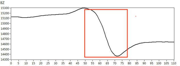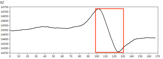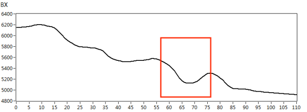 我們根據(jù)實際檢測對象的材質(zhì),制作了420*180mm規(guī)格的碳鋼材質(zhì)小接管管座試塊,試塊上角焊縫位置處分別長度*深度為10mm*3mm、5mm*2mm人工刻槽作為模擬缺陷,如下圖3所示。采用X1-LP-10型筆式探頭,首先在功能測試試塊上對交流電磁場檢測系統(tǒng)的綜合性能進行核查,得到典型缺陷的特征信號,如圖4所示。然后再對小接管管座試塊進行缺陷掃查,得到以下缺陷掃查圖像,檢測圖像如圖5、圖6所示。