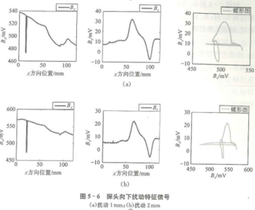 ②當(dāng)提離擾動方向相反時,Bx信號的變化方向也相反;且提離擾動的高度越大,Bx干擾信號的變化越大。