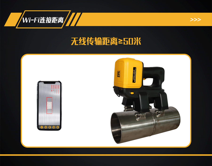 11、探頭內(nèi)部裝有500萬像素攝像頭,手機、平板電腦或AR眼鏡等手持終端安裝APP軟件,通過Wi-Fi與探頭鏈接,手持終端實時顯示探傷狀態(tài);